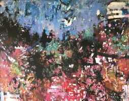 BIRDS FLY IN: A Human Refuge is a cross-cultural art collaboration focusing on themes related to Migration and Intuition. Artist Ellie Harold was surprised by birds who “flew” onto her canvas after the 2016 U.S. Presidential election. As intuitive messengers, they brought not only an entirely new way of painting, but comfort during confusing times. Later, as migration issues came to the fore, she felt birds were a metaphor for the universal human desire to move toward greater freedom and love. Following her intuition, Ellie met Mexican composer David Mendoza, creator of the soundtrack music, and German architect Wilfried Schley who designed the Refuge Space. This exhibit is intended to heighten awareness of how individuals, liberated from the cage of limiting beliefs, might open to good ideas that “fly in” to inspire action that is helpful to all. We hope this guide will stimulate your intuitive appreciation of the art and music and encourage you to record your own creative ideas, images or insights. Image: Ellie Harold, Urban (Night) Flight. 2018, Oil on canvas. 48 x 60 in. Detail.